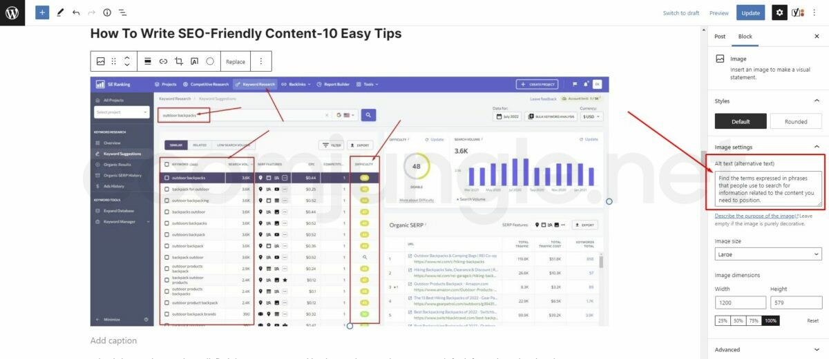 Something that many creators miss includes a target keyword in the names and ALT tags of your images.